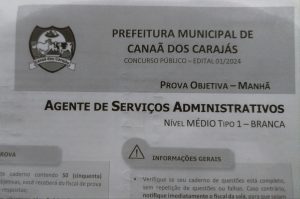Hoje(13) foi realizada a última etapa do concurso de Canaã dos Carajás, onde os candidatos para Auxiliar Administrativo puderam prestar