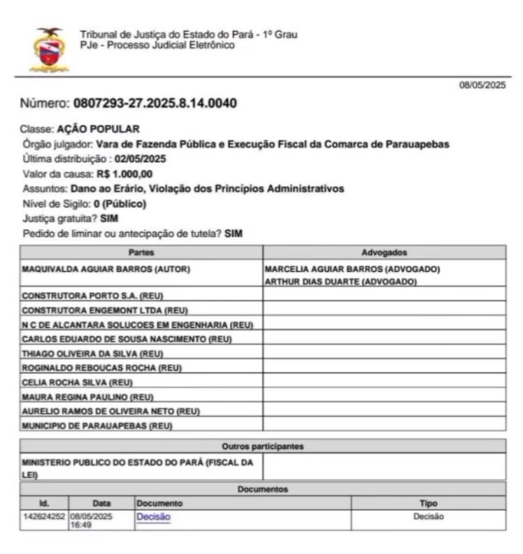 Além do Município de Parauapebas, são réus na ação os seguintes gestores públicos e representantes das empresas: