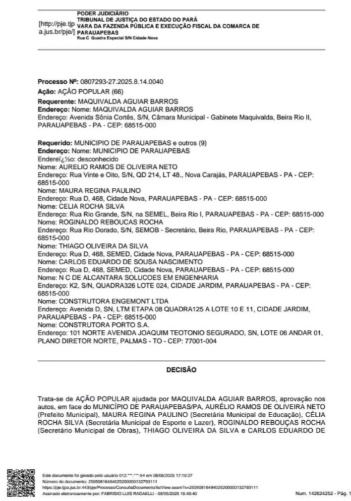 Em decisão proferida nesta quarta-feira (8), o Poder Judiciário do Pará determinou que a Prefeitura de Parauapebas apresente, no prazo de 72 horas, toda a documentação referente às reformas realizadas em escolas municipais e no Ginásio Islander Souza, supostamente executadas sem processo licitatório formalizado. A decisão decorre de uma ação popular movida pela vereadora Maquivalda Aguiar Barros, que questiona a legalidade das contratações e obras realizadas entre janeiro e fevereiro de 2025.