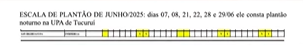E a situação fica ainda mais absurda quando se analisam as escalas. Em junho de 2025, Sami foi escalado para trabalhar na UPA de Tucuruí nos dias 7, 8, 21, 22, 28 e 29, todos no turno da noite. Mesmo assim, continuou figurando como efetivo em Imperatriz, recebendo R$ 3.600 brutos no Maranhão e mais de R$ 4.000 mensais em Tucuruí.