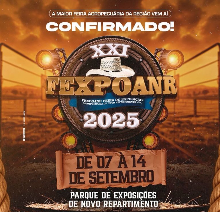 A maior feira agropecuária da região está oficialmente confirmada. A XXI edição da FEXPOANR — Feira de Exposição Agropecuária de Novo Repartimento — acontecerá de 07 a 14 de setembro de 2025, no tradicional Parque de Exposições do município.
