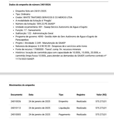E não se trata de contratos pontuais. Só em 2025, via Saaep, a empresa já recebeu mais de R$ 6,9 milhões, sendo milhões destinados exclusivamente ao aluguel de caminhões-pipa e, os mesmos que Aurélio dizia ter eliminado das ruas.