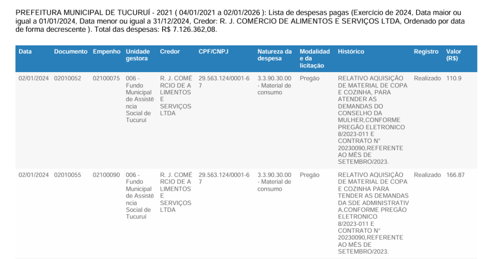 Levantamento com base em registros oficiais da Prefeitura de Tucuruí revela: