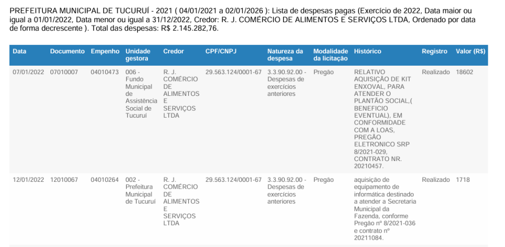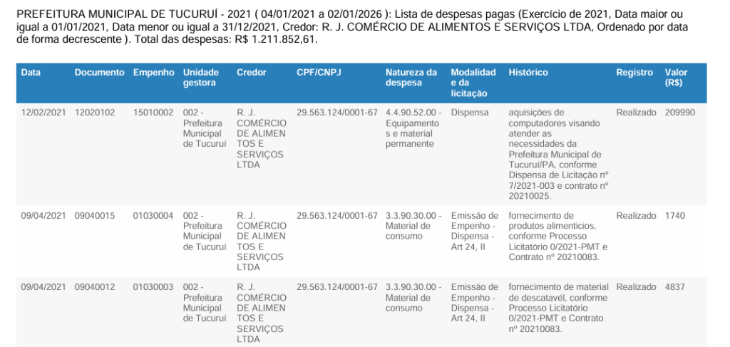 - 2021: R$ 1.211.852,61 pagos à RJ Comércio TC MPPA 4