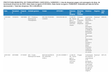 Todos os valores foram extraídos diretamente dos documentos públicos de despesas pagas pela Prefeitura de Parauapebas Os arquivos utilizados nesta apuração foram: