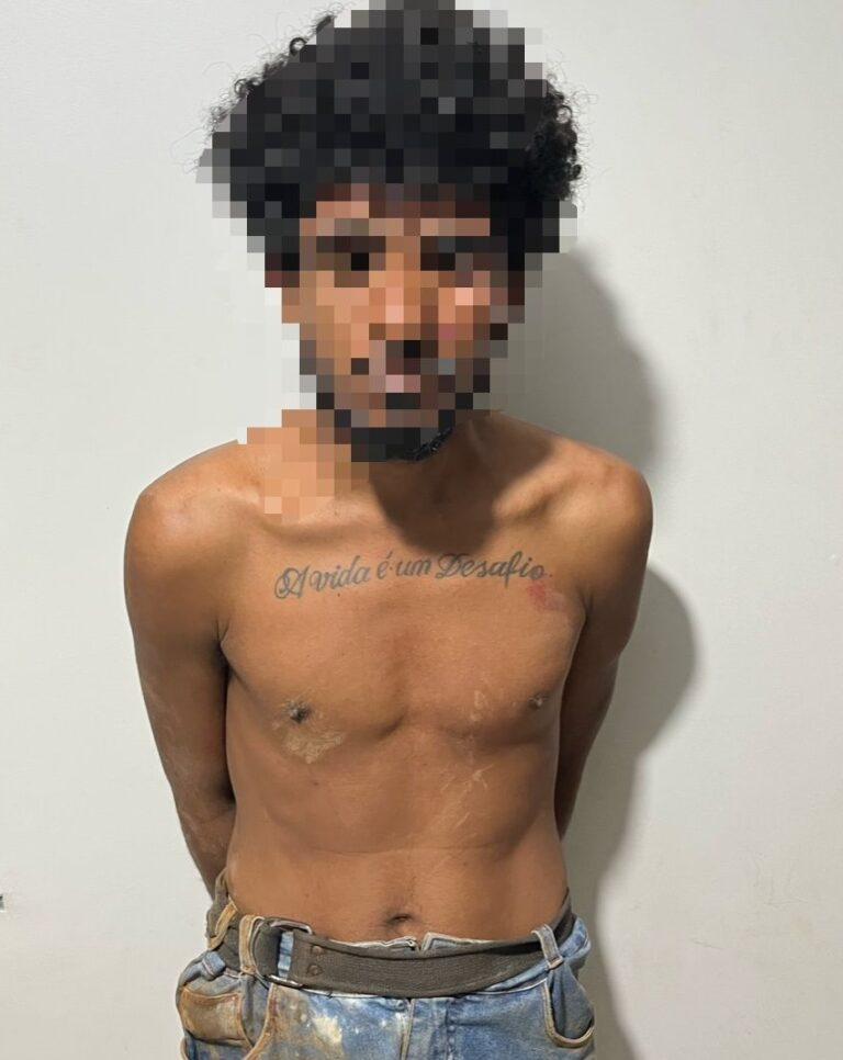 Após a detenção, a guarnição apreendeu a faca que estava em posse do suspeito e a apresentou, junto com Antônio, na delegacia para as providências cabíveis. O uso de algemas foi necessário para evitar fuga e garantir a segurança do detido e dos policiais.