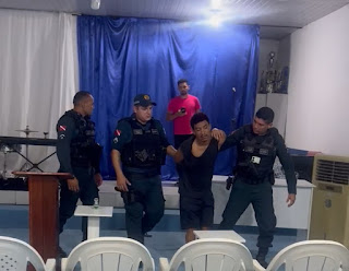 Ao chegar no local, os agentes realizaram buscas e localizaram Carlos escondido atrás de uma cortina, dentro do templo. Ele foi preso no ato e encaminhado para a Delegacia de Polícia Civil, onde permanece à disposição da Justiça.