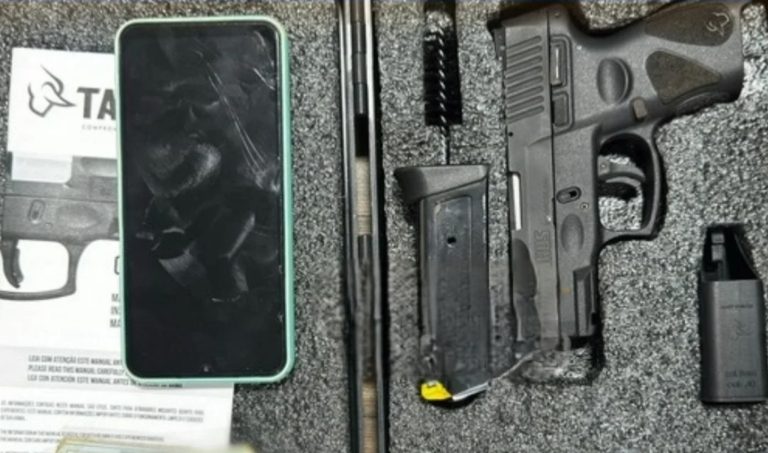 Ao chegarem ao local, os policiais encontraram Reginaldo dormindo e em estado de embriaguez. Ele colaborou com a equipe e indicou onde estava uma pistola Taurus G2C, calibre 9mm. A arma estava registrada no Sistema Nacional de Armas (SINARM), com certificado de registro válido. Além da pistola, foram apreendidos três carregadores e 11 munições intactas.