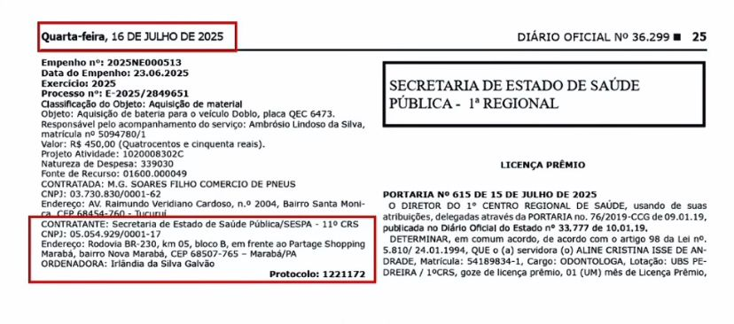 O detalhe é que tais plantões são presenciais, o que levanta a pergunta óbvia: Como a servidora consegue cumprir plantões em Marabá e, ao mesmo tempo, bater ponto como concursada em Tucuruí? Isso sem falar nas funções de direção administrativa que ela exerce, onde atua como ordenadora de despesas e assina empenhos, como comprova documento publicado no Diário Oficial do Estado de 16 de julho de 2025.