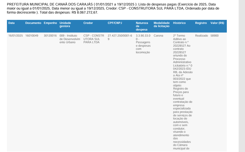 Canaã dos Carajás, uma das cidades mais ricas do Brasil graças aos royalties da mineração, vive um paradoxo difícil de explicar — e impossível de ignorar. Enquanto bairros inteiros convivem com falta de água, ruas esburacadas e filas constantes em postos de saúde, a gestão da prefeita Josemira Gadelha mantém um ritmo acelerado de gastos com locação de veículos e máquinas, que já soma mais de R$ 105.238.922,58 milhões de reais apenas em 2025, segundo dados oficiais de despesas pagas.