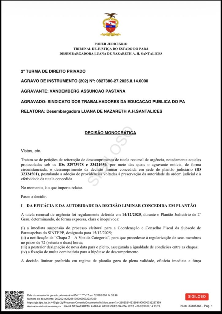 O Tribunal de Justiça do Estado do Pará (TJPA) anulou a eleição da subsede do SINTEPP em Parauapebas após constatar descumprimento deliberado de uma decisão judicial. A medida expõe uma prática grave: a direção sindical seguiu com o processo eleitoral mesmo após ordem expressa para suspensão do pleito.