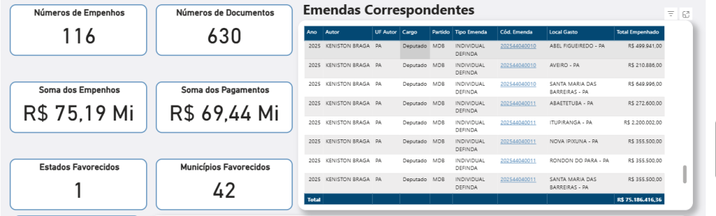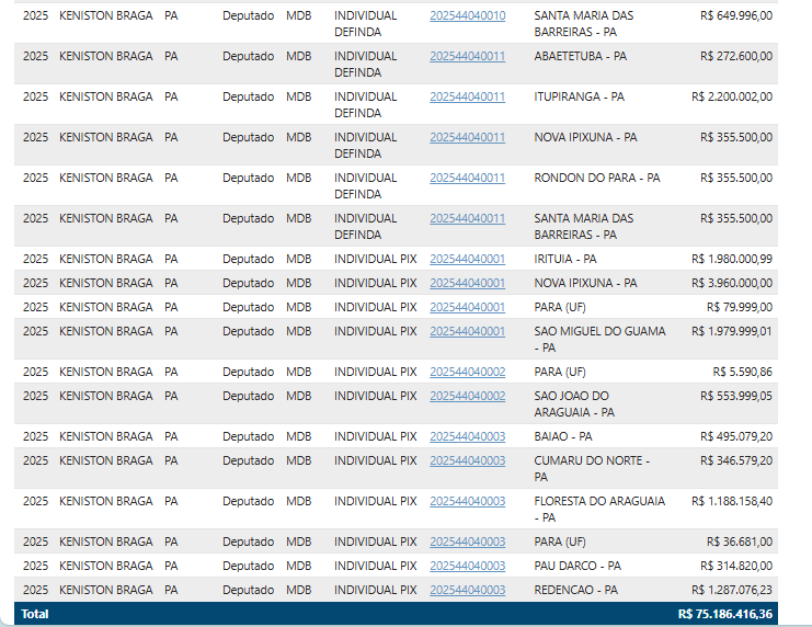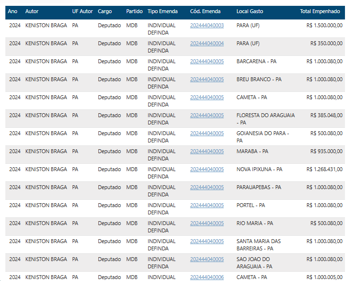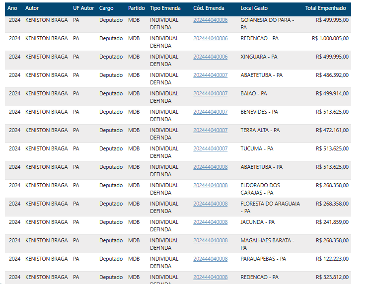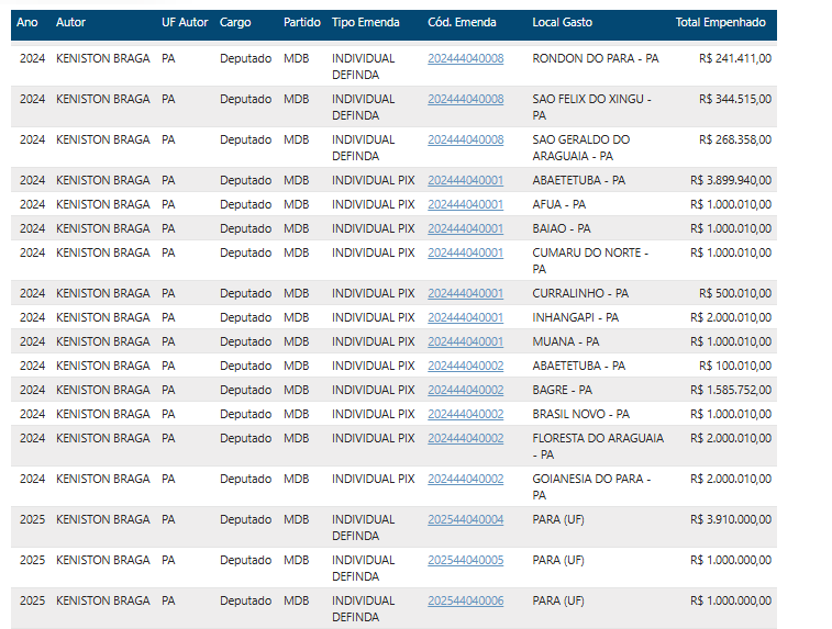 Em um cenário onde as emendas parlamentares deveriam servir como ferramenta para o desenvolvimento local, o deputado federal Keniston Braga (MDB-PA) parece ter esquecido suas raízes. Nascido em Abaetetuba, mas com carreira política forjada em Parauapebas – onde atuou como secretário de Fazenda e de Governo antes de ser eleito em 2022 –, o parlamentar destinou apenas R$ 2,132 milhões para a cidade que foi pivotal em sua ascensão ao Congresso. Esse valor representa míseros 2,84% do montante total de emendas disponíveis sob sua autoria, que soma impressionantes R$ 75,186 milhões, distribuídos principalmente em 2024 e 2025.