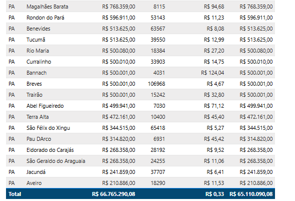 - Nova Ipixuna recebeu quase R$ 6,9 milhões