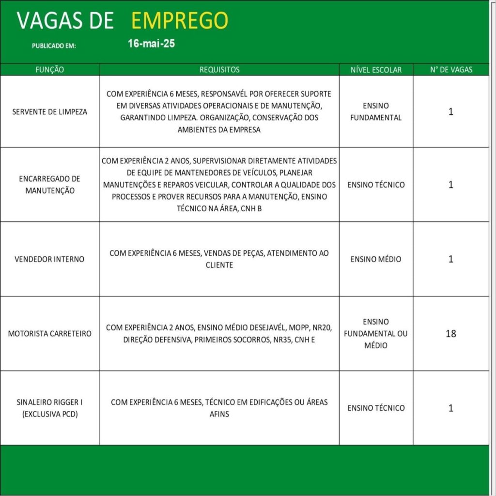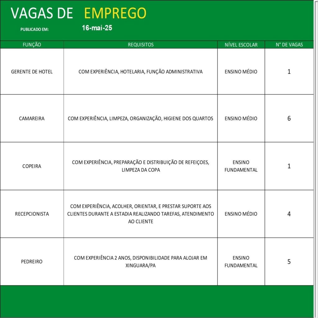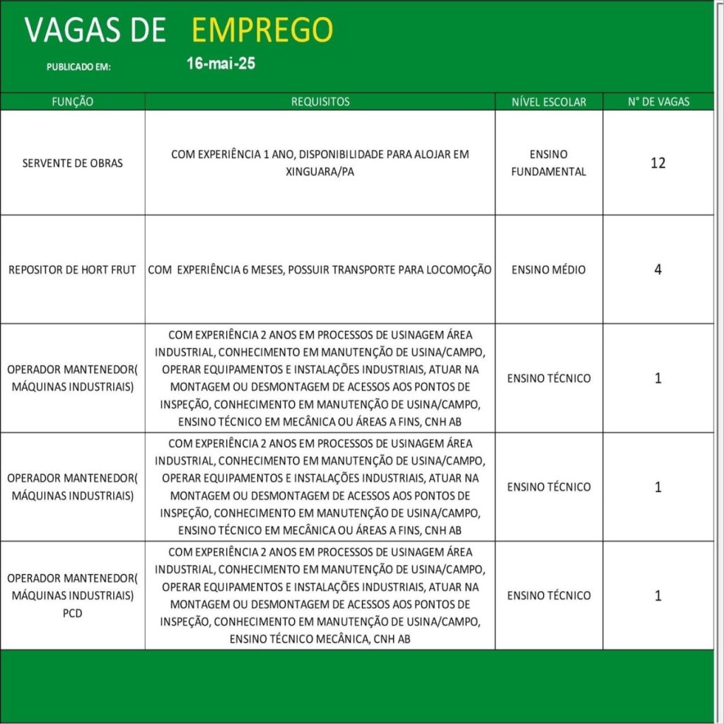 O Sistema Nacional de Emprego (Sine) de Parauapebas publicou nesta quinta-feira, 16 de maio de 2025, uma nova lista com dezenas de oportunidades de emprego para profissionais de diversas áreas e níveis de escolaridade. No total, são mais de 100 vagas disponíveis para contratação imediata, abrangendo desde funções que não exigem experiência até cargos técnicos e de nível superior.
