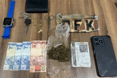 Durante a busca, os militares encontraram cerca de 19 gramas de maconha, além de R$ 17 em dinheiro e um aparelho celular. A motocicleta, registrada em nome de outra pessoa, também foi apreendida.
