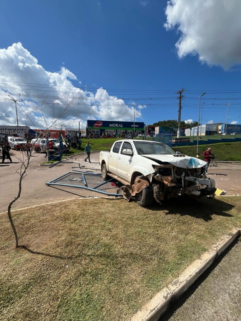 A ação teve início por volta das 13h40, após a guarnição receber informações de rastreamento de um celular roubado no estabelecimento “Sucatão Rio Verde”. O rastreamento apontava a localização do aparelho, levando os policiais a iniciarem diligências. Em paralelo, os agentes também receberam a informação de que uma caminhonete Toyota Hilux, placa JGD-6322, usada no crime, estaria circulando pela cidade.