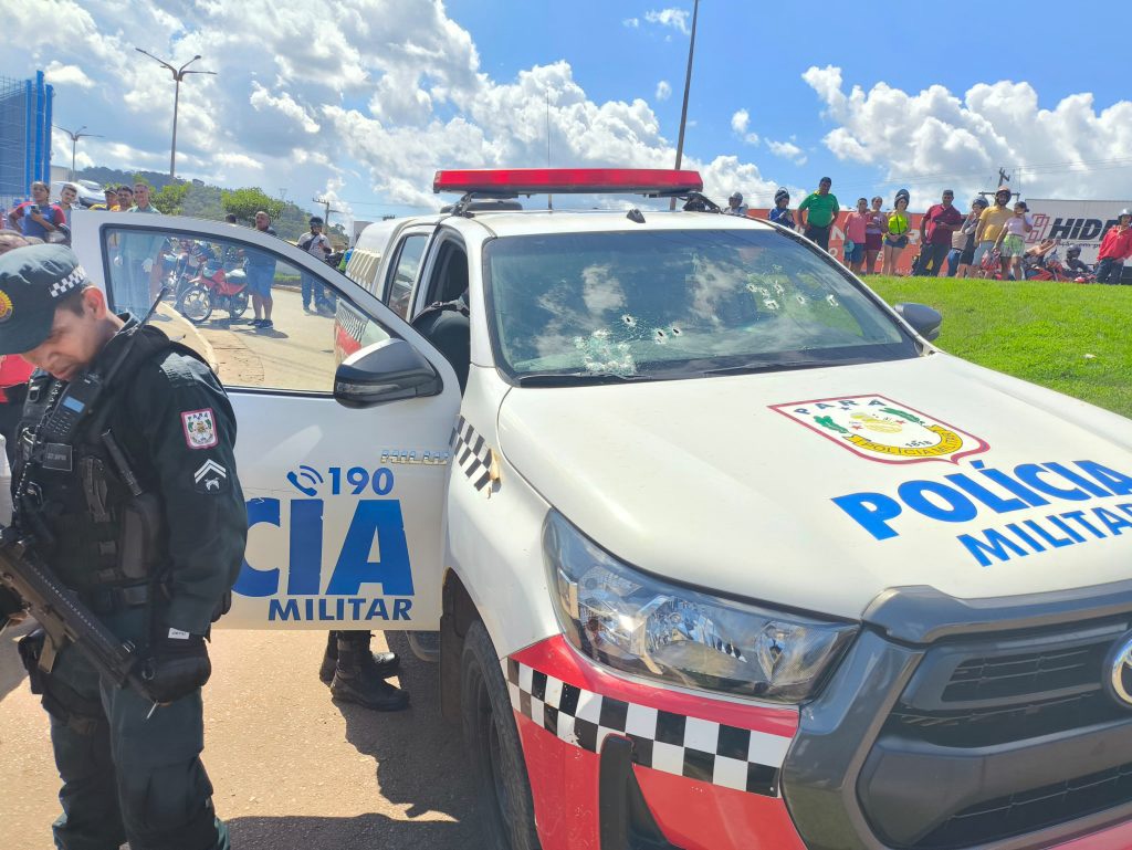 O veículo foi localizado trafegando pela PA-160 e passou a ser acompanhado pelas viaturas da PM. Durante a tentativa de abordagem, os criminosos colidiram com a entrada do Supermercado Assaí, na PA-275, e abriram fogo contra os policiais. A viatura chegou a ser atingida pelos disparos.