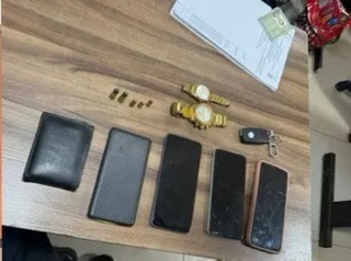 Na ação, a polícia apreendeu um veículo VW Voyage utilizado no crime, além de munições de calibres .32 e .38, três celulares, um carregador portátil, dois relógios, documentos pessoais e uma chave de motocicleta.