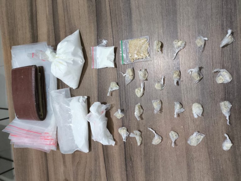 Durante a verificação no local, os agentes encontraram 25 papelotes de crack, totalizando 14,5 gramas, além de quatro porções de cocaína, que somavam 102,2 gramas. As substâncias apreendidas foram encaminhadas à delegacia de Polícia Civil para as providências cabíveis.