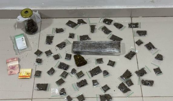 Durante a revista, os agentes encontraram dentro da mochila do adolescente de 16 anos uma quantidade significativa de drogas. Foram localizadas duas barras de maconha prensada, totalizando 1,157 kg, além de 48 papelotes do mesmo entorpecente, pesando 257 gramas, e mais 34 gramas de maconha não prensada. Um papelote de crack também foi encontrado com eles. O total de maconha apreendida foi de 1,448 quilo.