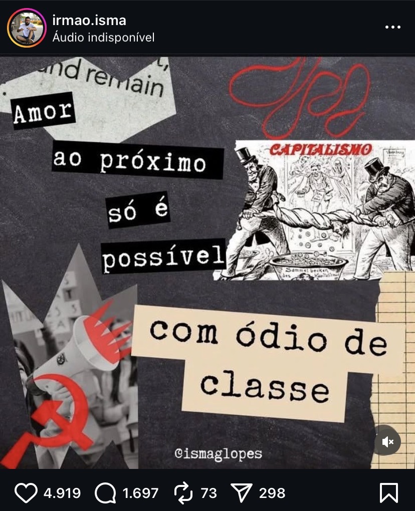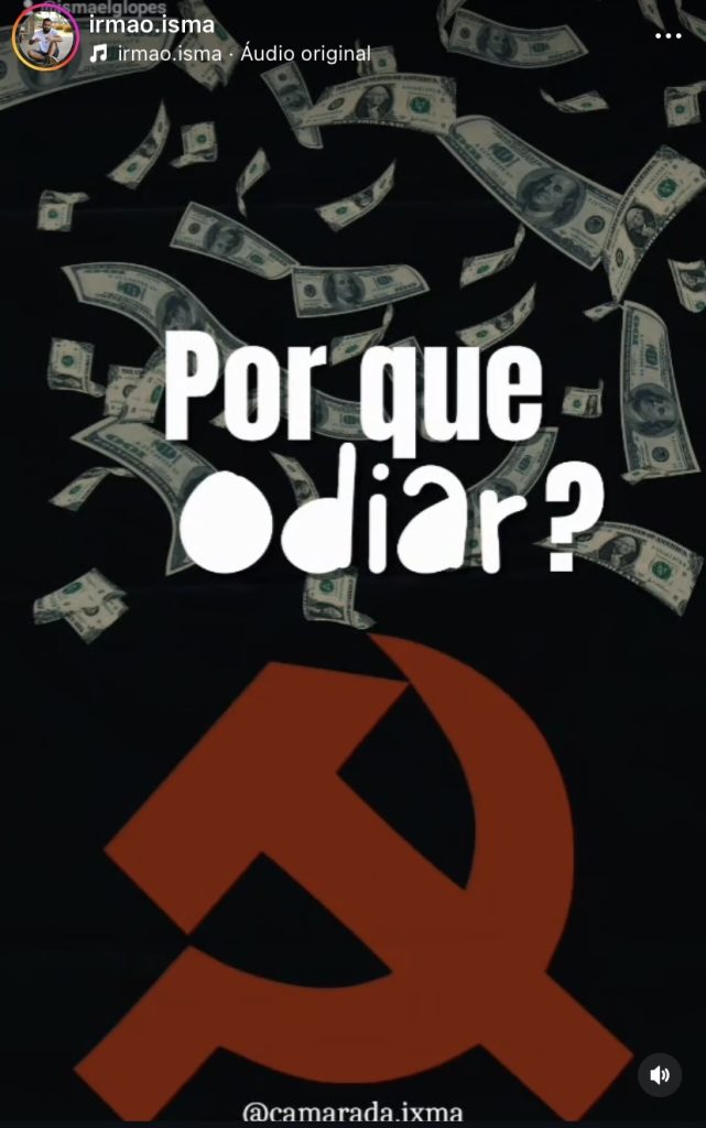Conhecido como irmão Isma, o pastor costuma expor posições políticas de esquerda. Em uma de suas publicações, ele exibe o símbolo comunista do martelo e da foice, acompanhado da frase: “Amor ao próximo só é possível com ódio de classe”. Em outro post, questiona o sistema capitalista: