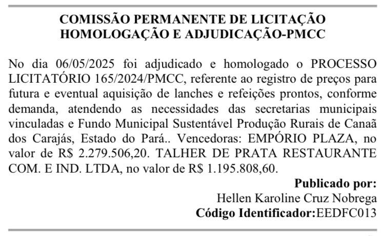 A gestão do novo secretário de Agricultura de Canaã dos Carajás, Zito Augusto Correia, já começa cercada de polêmicas. A edição do Diário Oficial dos Municípios, publicada na última terça-feira (07/05), revelou que a pasta homologou um contrato de R$ 3.475.314,80 para fornecimento de lanches e refeições prontas.