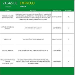 *Para fazer o cadastro , levar Currículo , Carteira de Trabalho e Comprovante de Endereço*